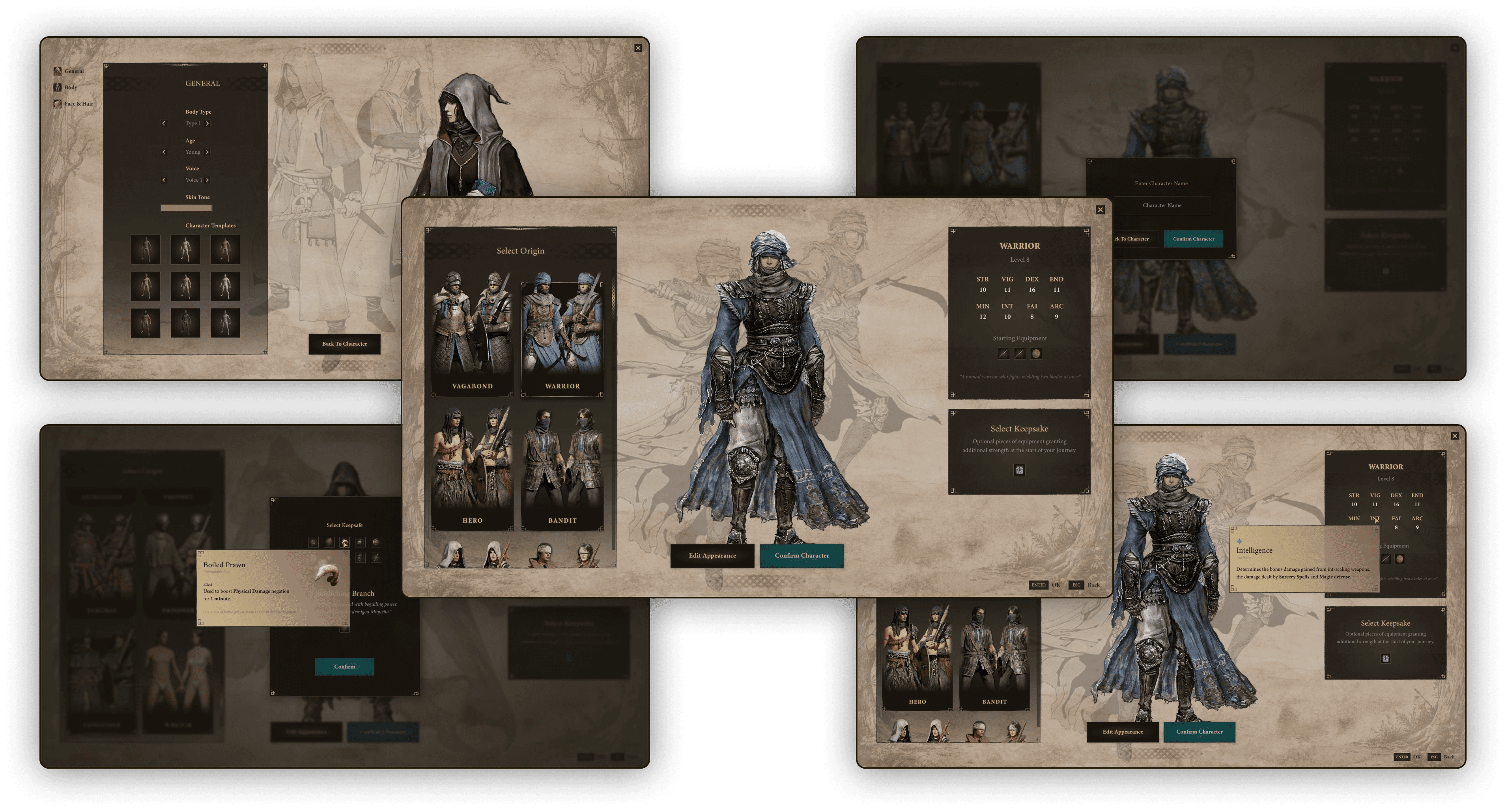 My role in the project ranged from the research and analysis of how the players interact and understand the character creation and the first minutes of gameplay. Then I moved to the creation, testing and iteration of the wireframes solution. And finally the creation of a new visual style different from the current one, ready-to-implement into game engine.