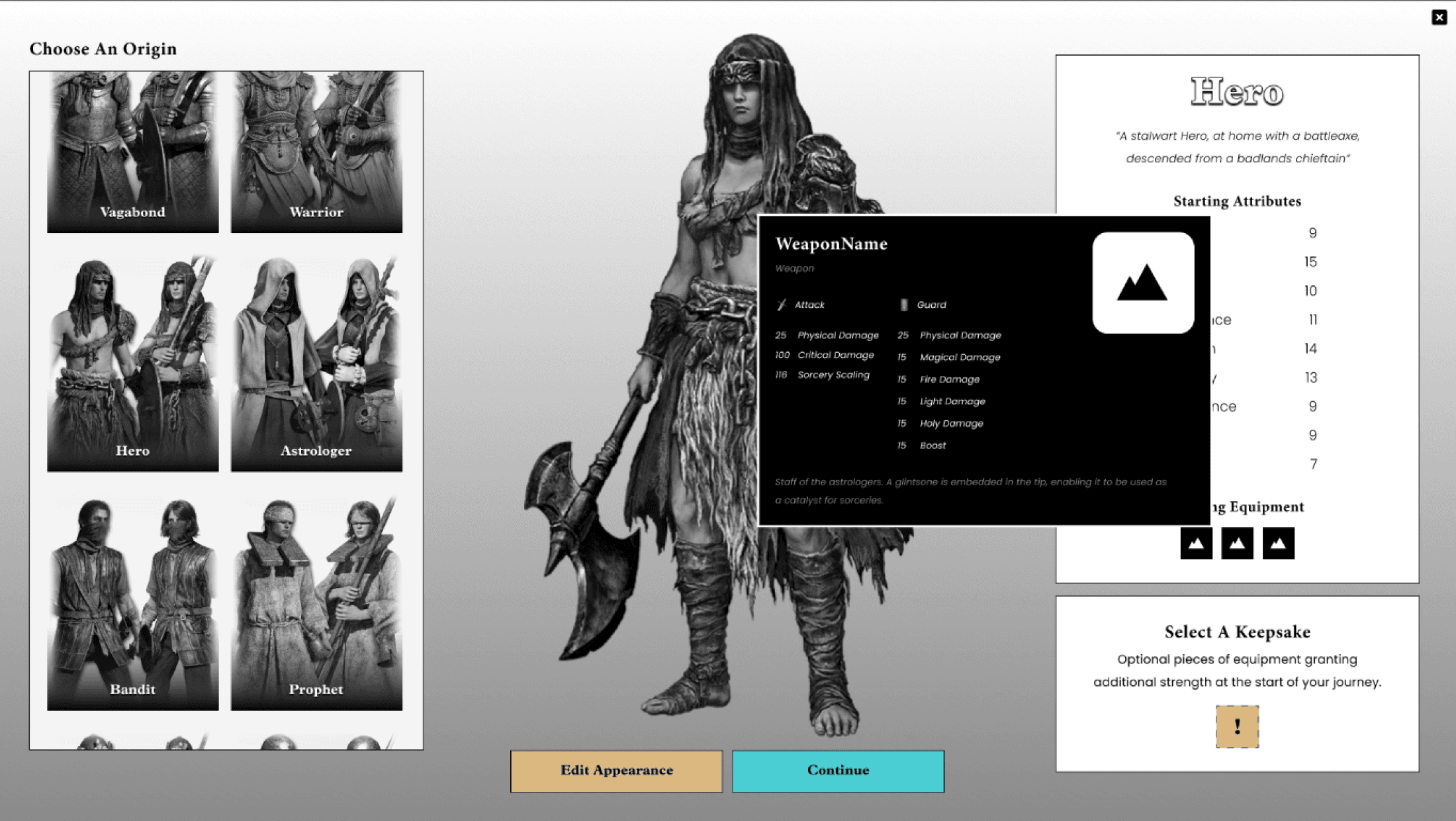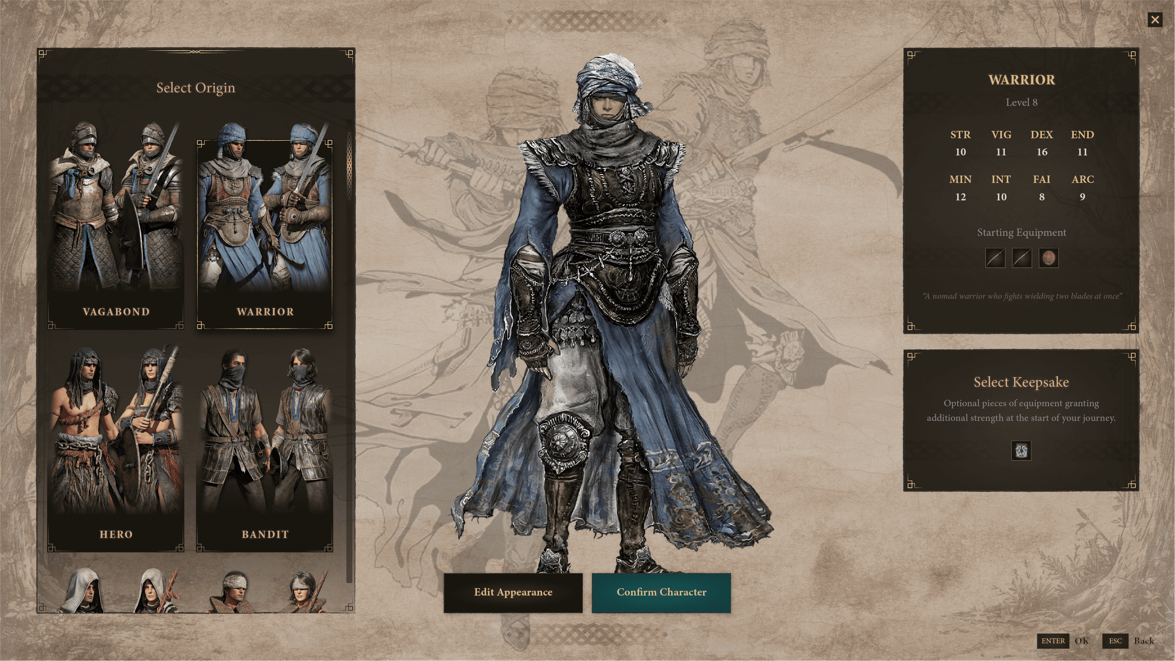 Players create their character and complete all tasks very easily and smoothly, except the keepsake selection.