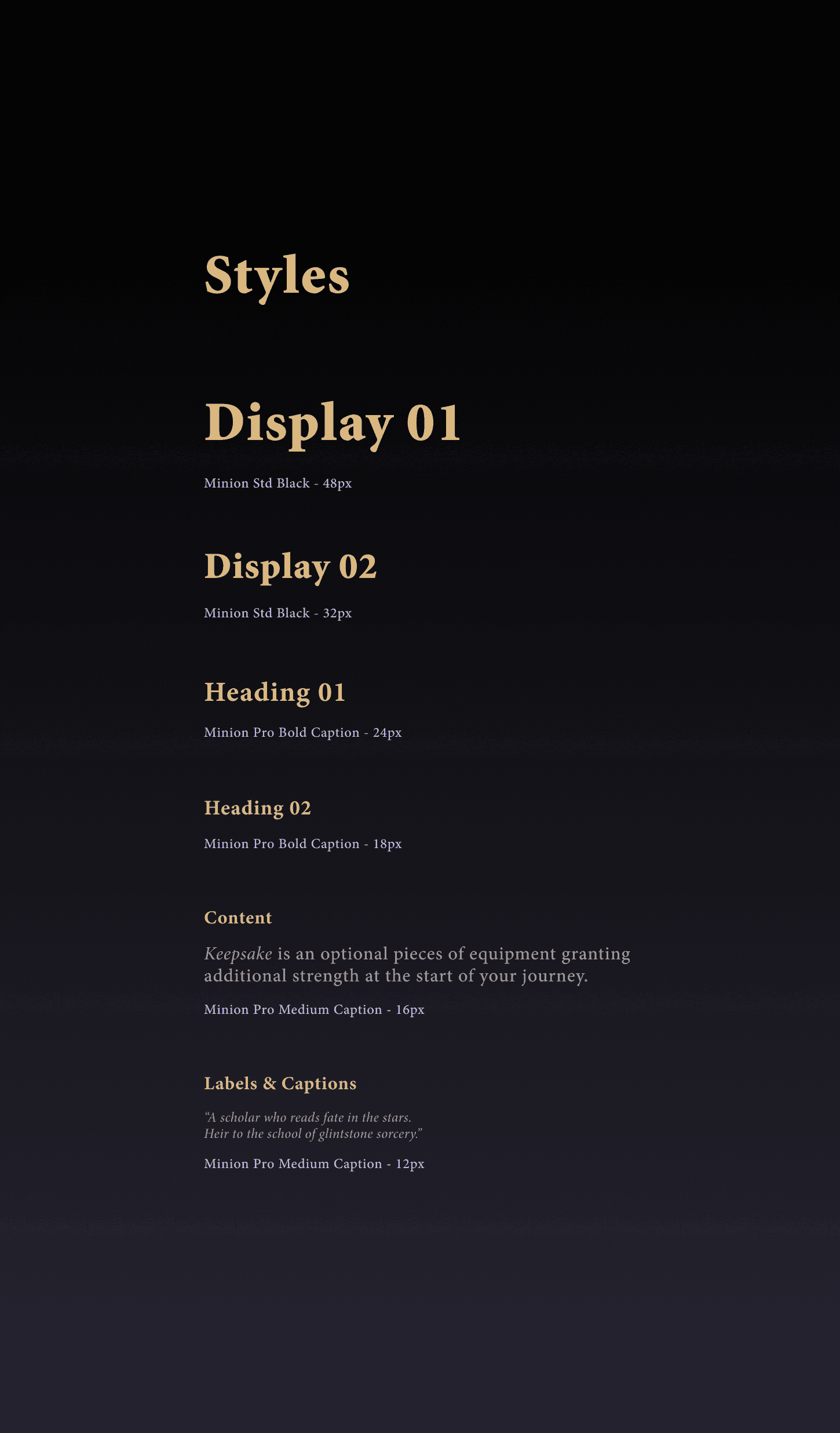 One of the challenges I was looking for this project was to create a new visual style, which would not stray too far from the Elden Ring concept but at the same time to be completely different from the current one and to help me strengthen my design skills.