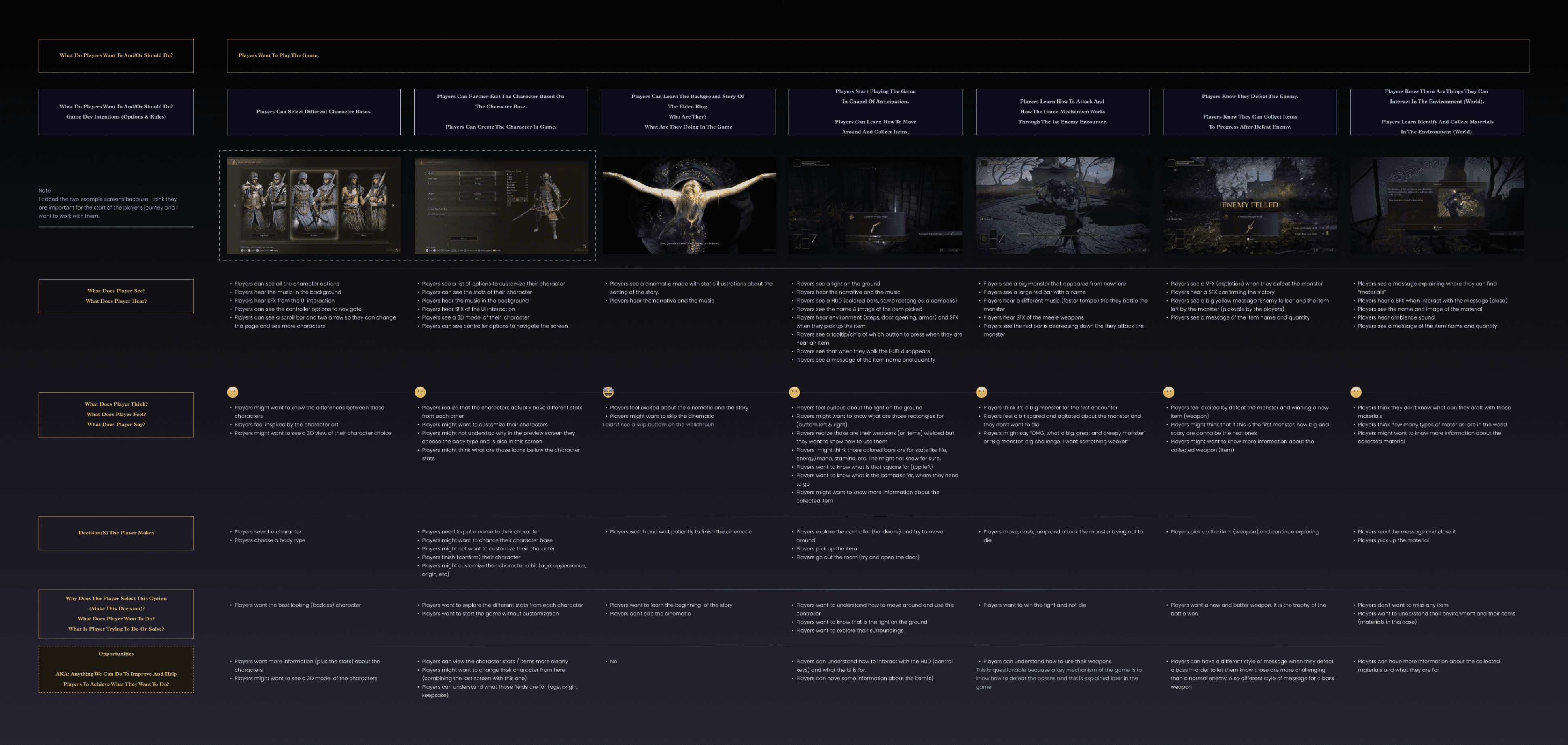 In order to correctly understand the decisions and actions the players take, I analyzed the user experience for the first time players and based on that I propose an improvement solution in the character creation.