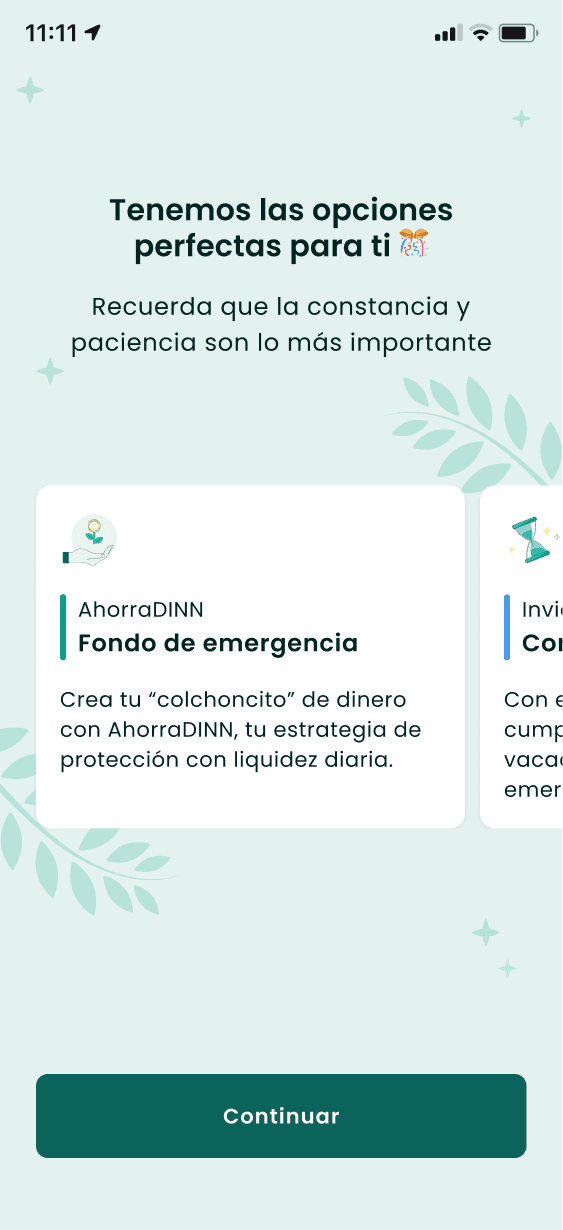 Once we decided on the focus, our team started gathering information from experts in other areas of the bank (DINN is part of a Mexican bank, Actinver, which has been around for over 30 years) and from other products.