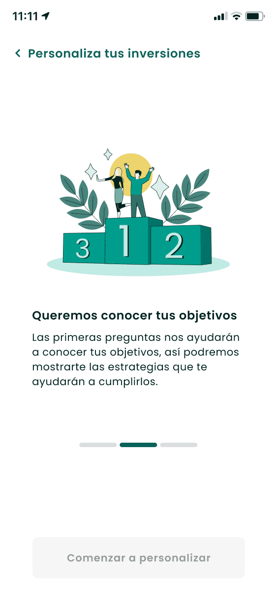 A questionnaire-based flow was created to understand users’ goals, savings capacity, and risk tolerance. Regulatory constraints were respected by integrating mandatory risk assessment flows.