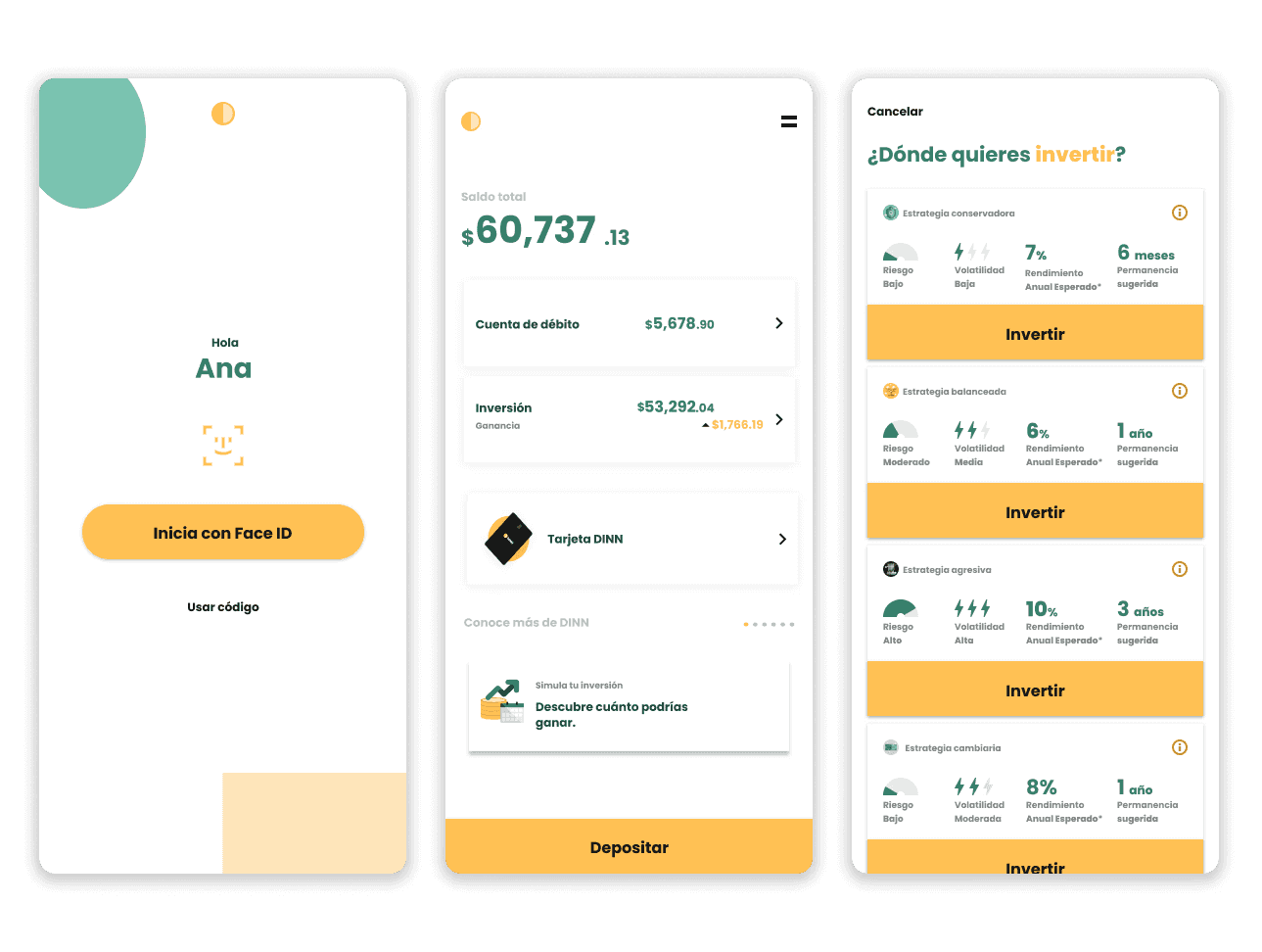 DINN is a mobile investment app owned by Actinver Bank, designed for young users with limited experience in investing. In 2022, rapid user growth and team expansion exposed inconsistencies between the product experience and the brand vision. The project focused on applying the new DINN brand system to the app, ensuring clarity, trust, and scalability across the product.