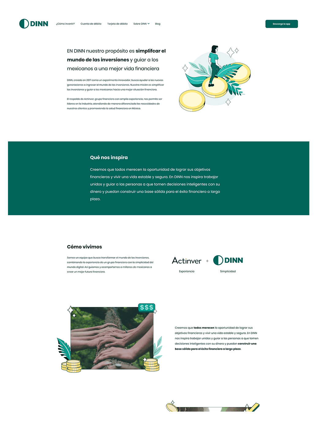 The brand sometimes appeared too childish visually, which led to a loss of credibility, even though security was one of our pillars, thanks to DINN being part of Actinver Bank.