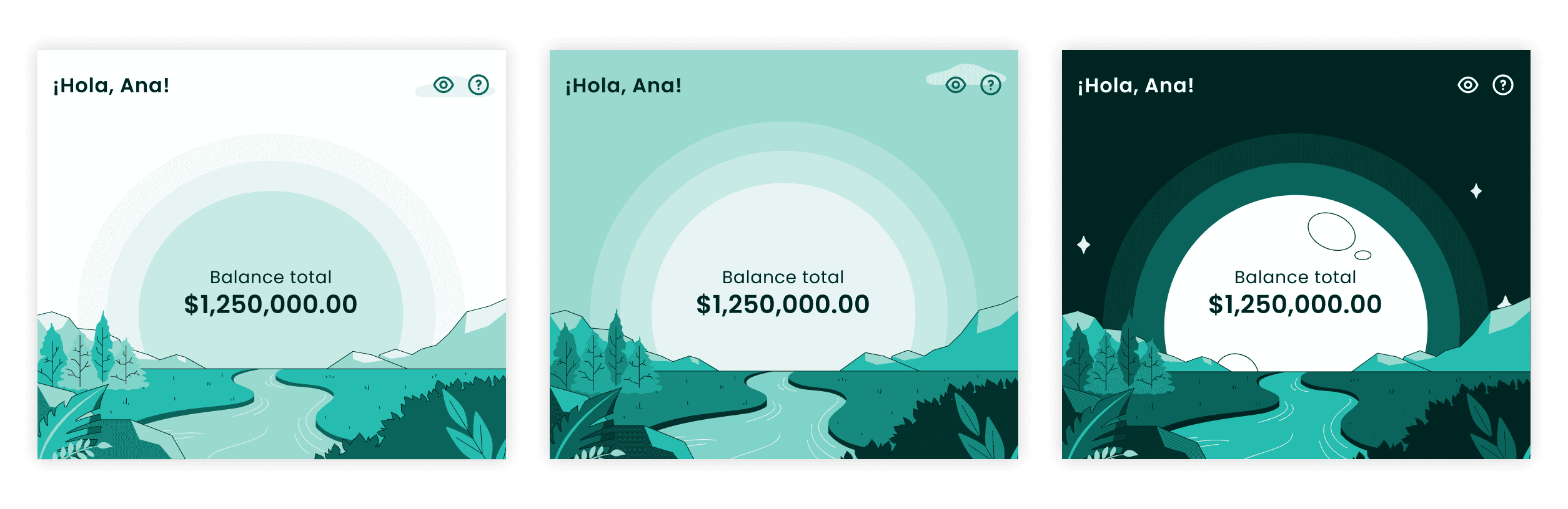 The background of your dashboard, and login screen changes depending on the time of day: morning, daytime, and night.