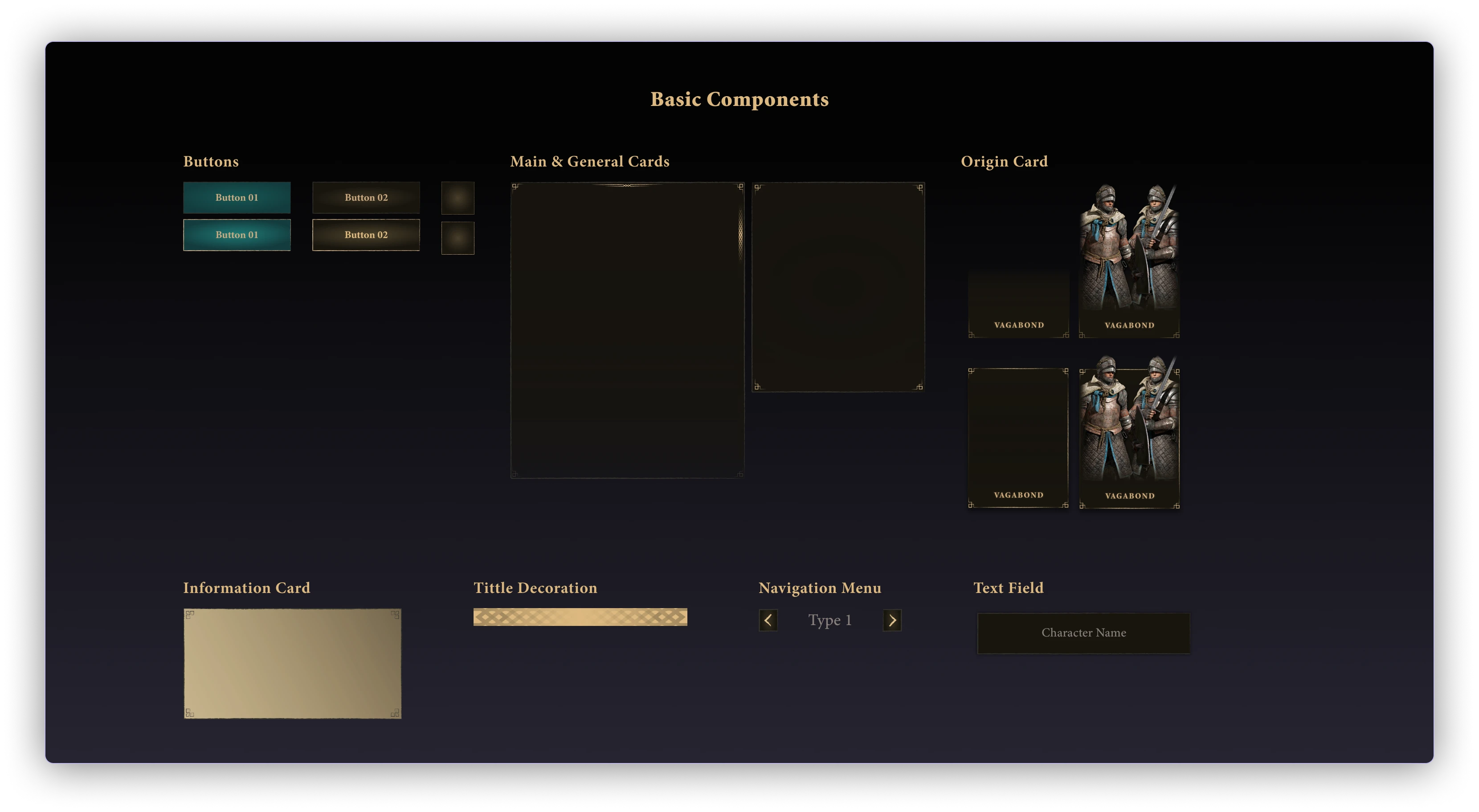 The icons & characters were borrowed from Elden Ring Wiki, I designed everything else from scratch. The background image is a mashup I made from various textures I found for free use and edited in PS.