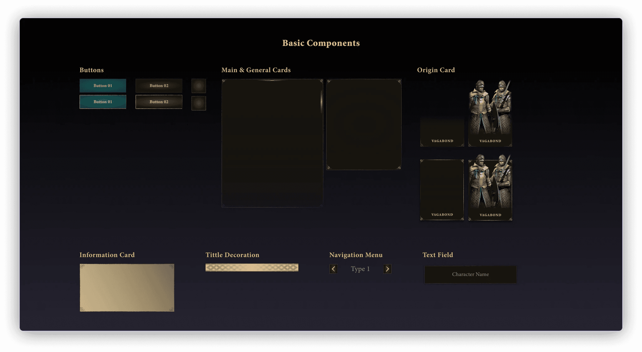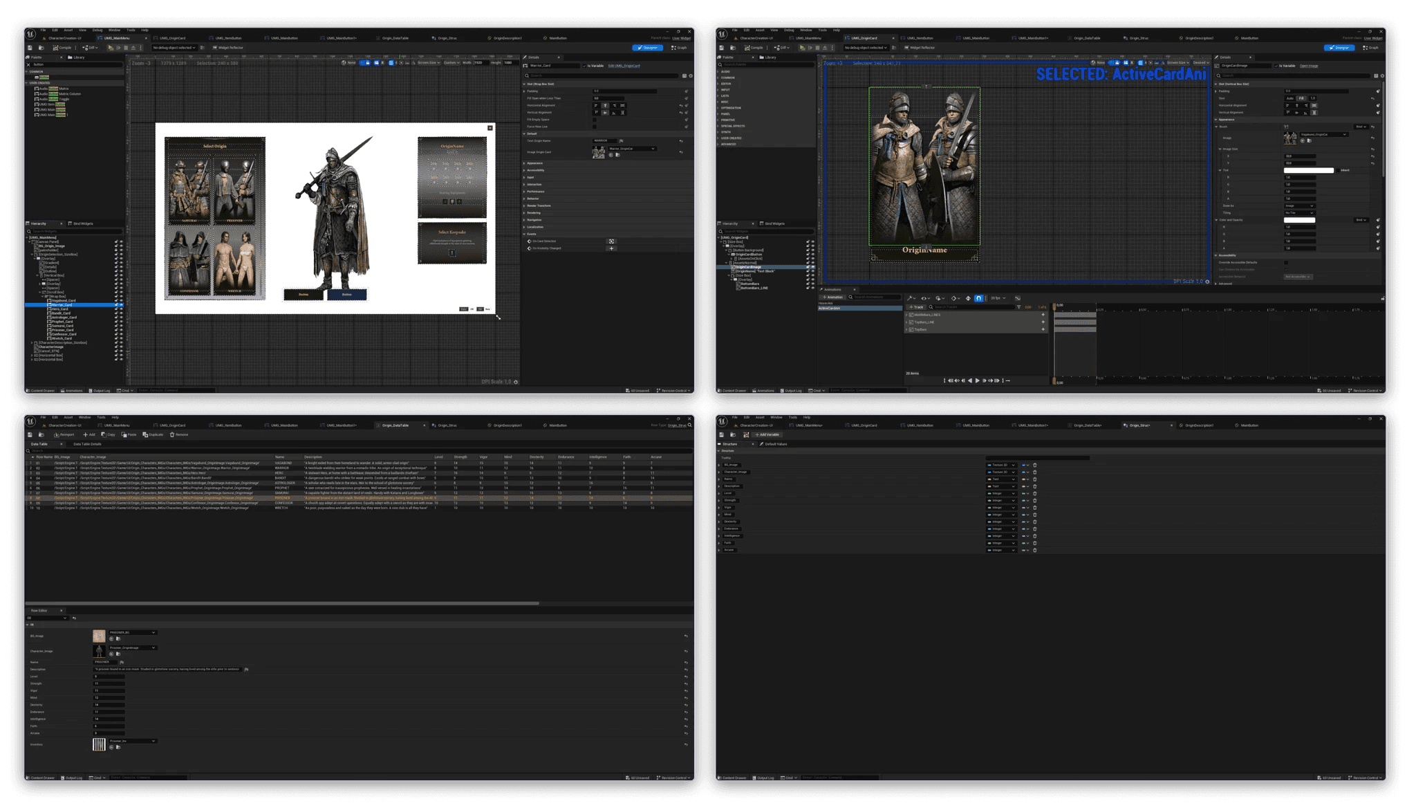 To explore a UI style consistent with Elden Ring while improving readability through simple component rules, and implement a partial UE5 (UMG) prototype with Origin selection and data-driven content updates.