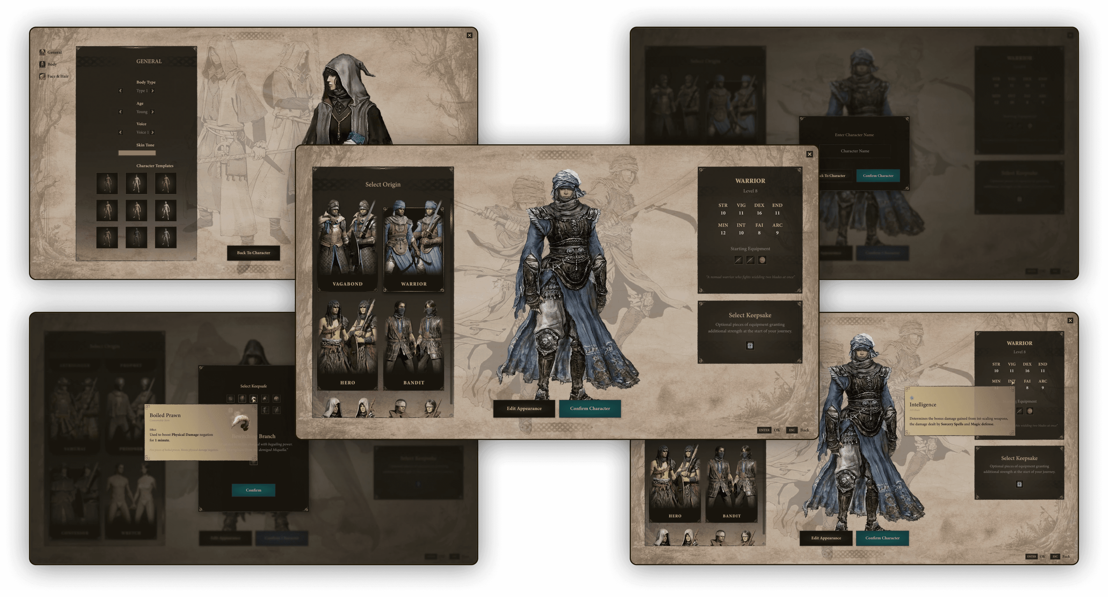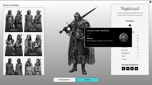 A UX/UI redesign proposal for Elden Ring’s character creation that reduces first-time player overwhelm through clearer structure, contextual help, and a new visual system—plus a partial UE5 implementation.