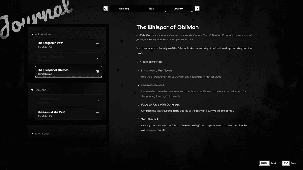 This is a personal UI concept for a first-person horror adventure game. I wanted to design more than a single “cool screen,” so I defined a small system: three core menus—Inventory, Map, and Missions—plus the in-game HUD. The aesthetic mixes Mexico in the 60s (brutalist references and classic Mexican horror cinema) with a contemporary, clean HUD for clarity.
