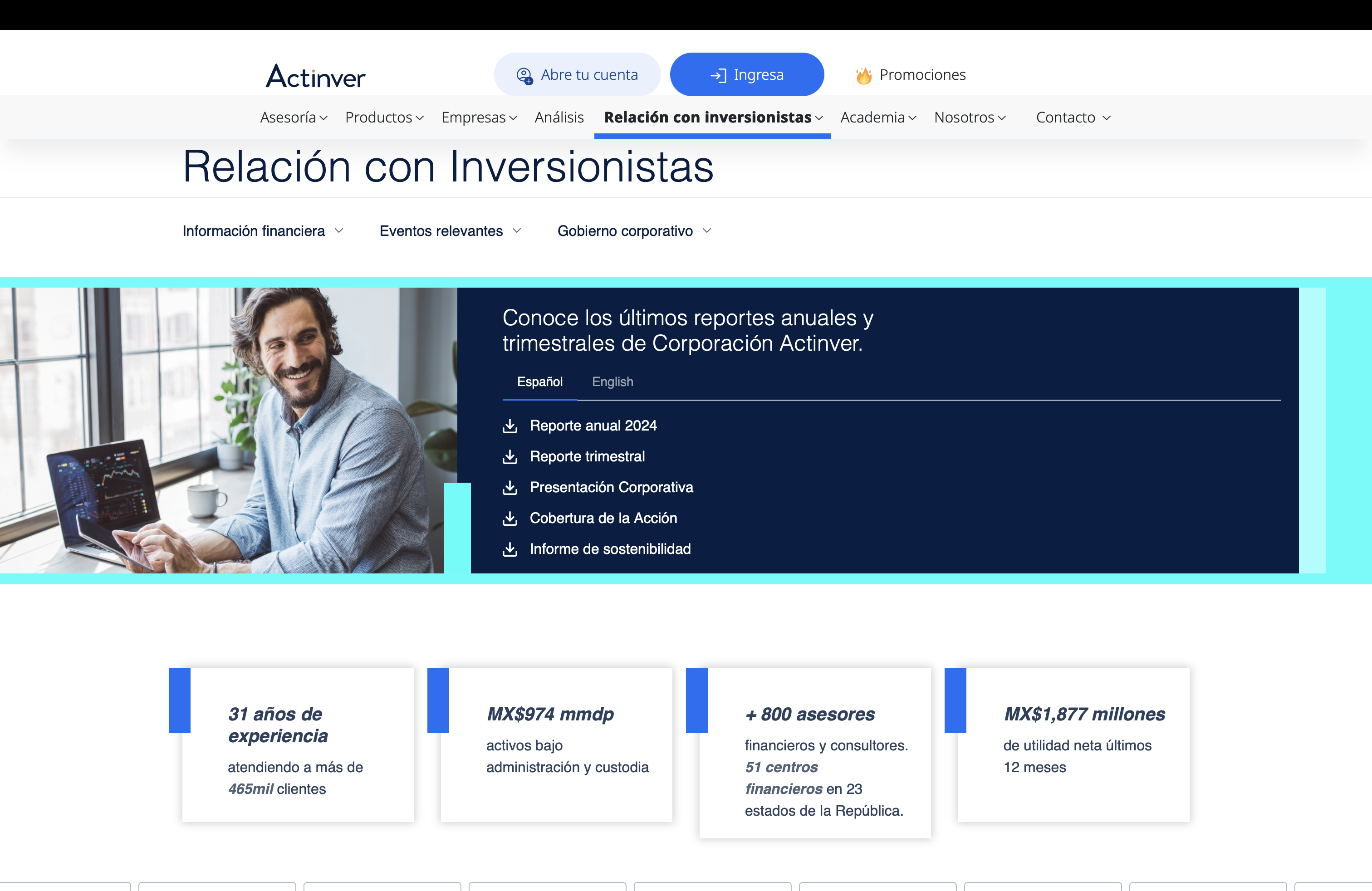 Company: Actinver — national investment bank, multi-channel, multiple business units (digital investments, trading, insurance, premium advisory)