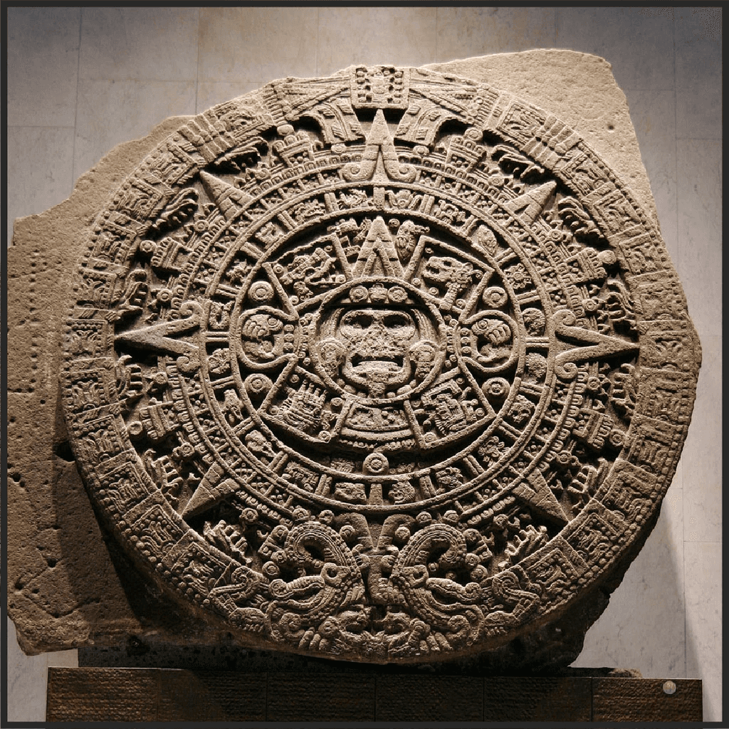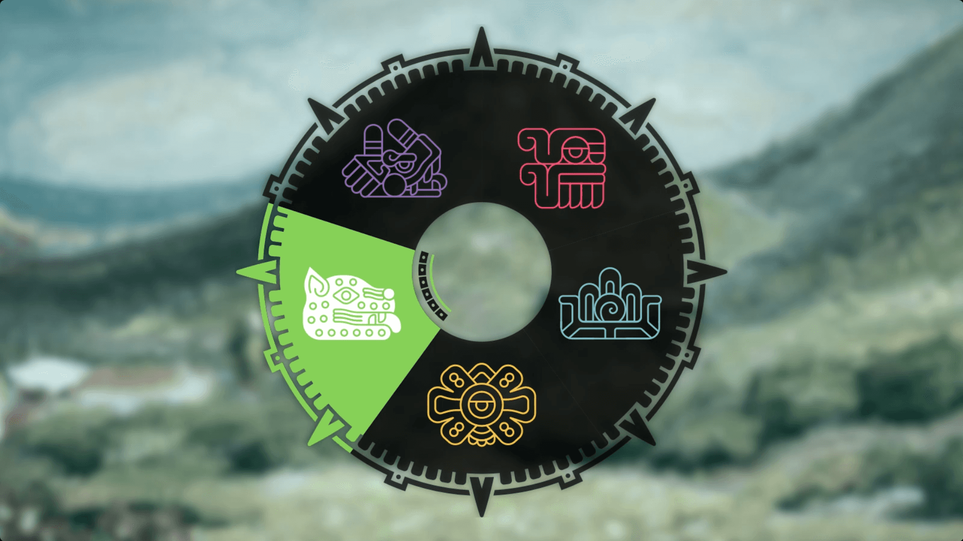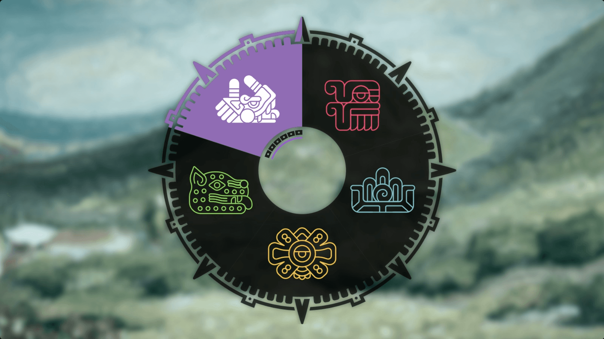 A radial menu inspired by the Aztec Sun Stone, featuring a custom icon set for five eras.