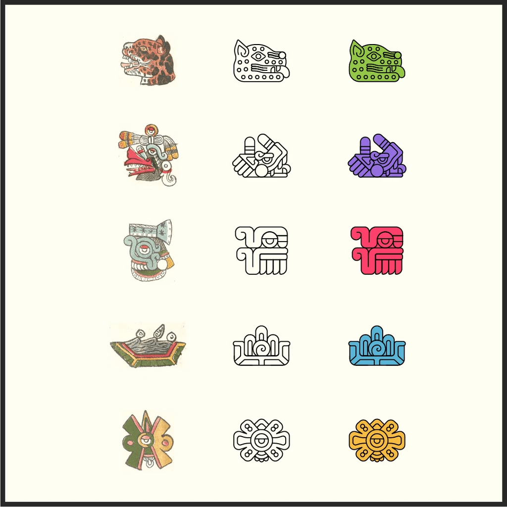 Radial menus are a common interaction pattern in games, so I explored a version grounded in cultural geometry. I used the Aztec Sun Stone as the structural reference, extracting circular forms and creating a radial system that feels symbolic but still usable.